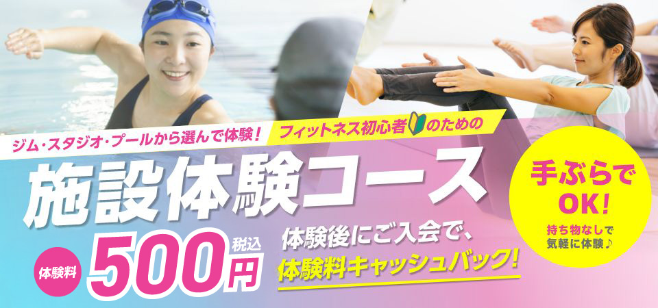 【体験内容】 マシントレーニング、スタジオレッスン、プールなど様々なコースをご用意しております。